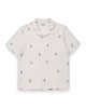 Kuwalla Tee Embroidered Floral Shirt in Beige. Men’s short sleeve textured button-up with subtle floral embroidery and elevated summer resort styling.
