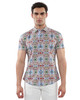 The standout grid pattern—layering lush fauna motifs in brick, sky blue, and laurel green against a blush pink base—is printed on ultra-soft cotton jersey with natural stretch. Meticulous construction ensures the design aligns flawlessly across the placket for a sleek, uninterrupted finish. Lightweight, breathable, and striking from every angle, this is a head-turning piece that wears as effortlessly as it looks.